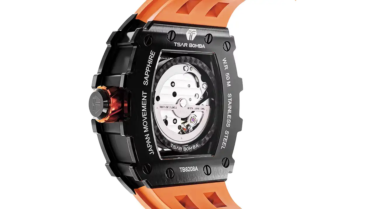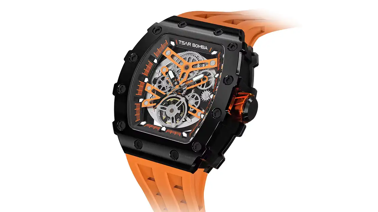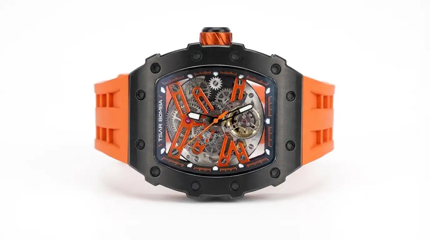 The TSAR BOMBA automatic watch combines a Miyota automatic movement, a skeleton tonneau design, and luxury-inspired aesthetics often compared to Richard Mille, offering bold wrist presence, mechanical reliability, and AliExpress-friendly pricing with standard delivery and return protections.