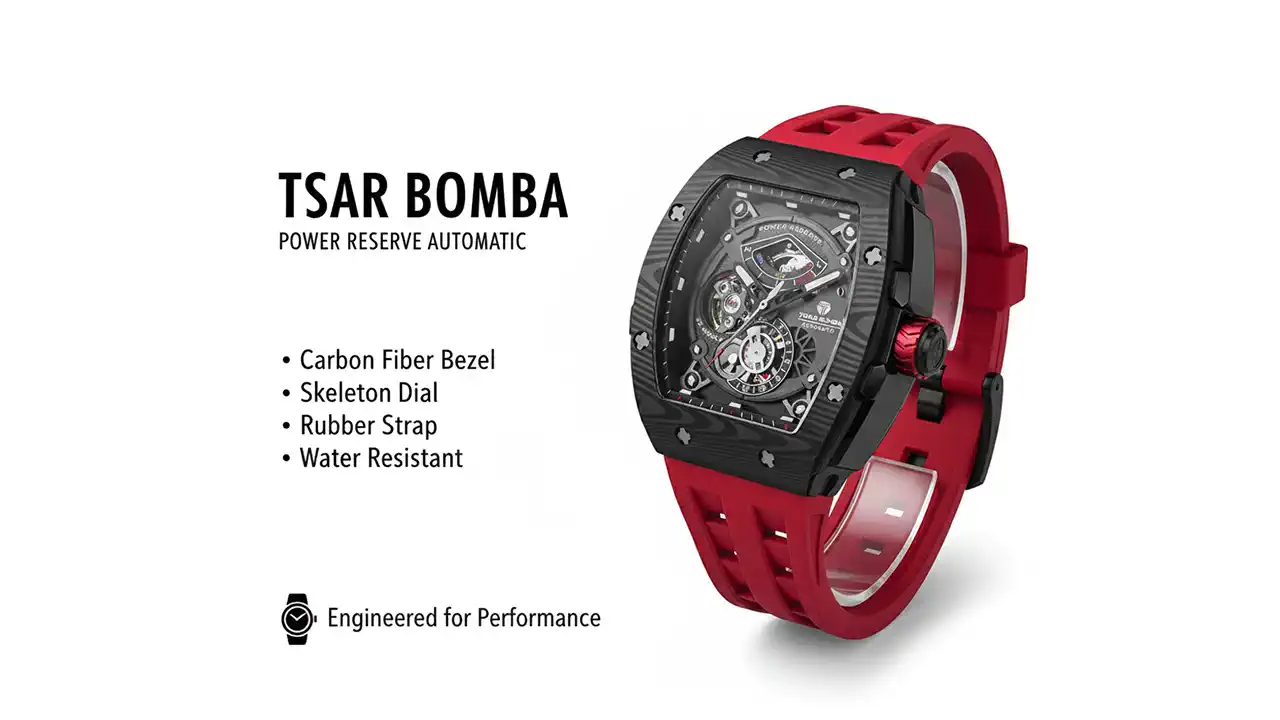 Meet the TSAR BOMBA Carbon Fiber Bezel Automatic Watch, a mechanical wristwatch that screams sophistication… even if your daily accomplishment is microwaving instant noodles.